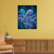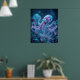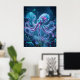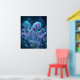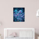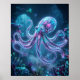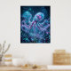 A mesmerizing neon octopus drifts through a futuristic underwater reef, glowing with cyan, magenta, violet, and electric blue energy. Its translucent mantle, illuminated suction details, and flowing arms create a hypnotic sense of motion and intelligence. Surrounded by luminous coral forms, holographic currents, suspended particles, and deep ocean darkness, the scene feels rich and cinematic. This cyber marine creature design is ideal for modern interiors, gaming rooms, beach homes, and collectors who love ocean life with a futuristic twist.