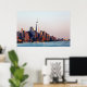 Vue de New York Skyline au coucher du soleil de l'eau, avec One World Trade Center.
