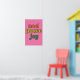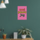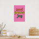 Cette affiche sur le thème de Noël présente les mots "noel, paix et joie" dans le style rétro en lettres orange, vert citron et vert foncé contre un arrière - plan rose vif.