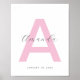 Pink Initial Name Poster personnalisé : Ce design est fait simplement mais beau. Le choix de couleur rose est adapté aux bébés filles. Les produits avec ce design sont parfaits pour les cadeaux pour enfants, les cadeaux de naissance, les cadeaux d'anniversaire pour les enfants, nièces et petits-enfants. Cette affiche permet également d'installer des téléchargements et vous pourrez customiser et télécharger votre design en PNG, JPG ou PDF pour un usage personnel seulement.
