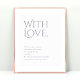 Un signe mariage réfléchi et gai qui dit "Merci d'être ici, avec des coeurs pleins de joie Pour avoir fait ce jour, oh si cher Nous vous aimons tous, avec tous nos coeurs Alors que nous nous engageons, sur ce nouveau départ."
