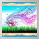 art numérique avec papillon herbe ciel et notes de musique flottant.