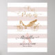 "Notre Princesse Elegant Gold Blush Carriage Nom du script, Monogramme initial et Birth Stats Wall Art Poster." Exquisément belle, script de parties scintillant d'or texte de calligraphie avec des fioritures et un modèle de chariot royal annonce, "Notre princesse." De larges rayures blanches et roses avec son nom, monogramme initial, date de naissance, date de naissance, poids et longueur pour que vous puissiez chérir éternellement! Art par Audrey Jeanne Roberts, artiste et designer de renommée internationale, copyright.
