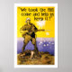 Affiche australienne de la Première Guerre mondiale par Harry T. Weston, 1915, montrant un soldat sur un sommet d'une colline au-dessus d'une bataille navale, faisant probablement référence à la bataille de Gallipoli où de nombreuses vies australiennes ont été perdues.