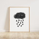 Cloud et Raindrops en noir, de style brosse calcaire et texturé, parfaits pour la décoration de pépinière, les tentures murales de chambre pour enfants ou les petites peintures murales de salle de jeux pour enfants.