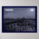 La vue de mon cabine à flanc de montagne dans la baie de l'Idaho; sur la montagne Katka près de la ville de Bonners Ferry. Le clair de lune, toujours si légèrement obscurci par les nuages, se reflète dans les montagnes enneigées. Les conifères couvrent le paysage. Le texte "IDAHO" apparaît également. Sasquatch vit ici.