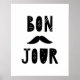 Décorez la nurserie de votre petit trésor avec ce joli poster moderne scandi noir et blanc Bon Jour avec moustache. © Julie McIver
