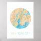 Une découpe circulaire d'une carte aquarelle de New York City.