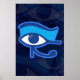 Poster avec l'oeil de Horus, le symbole de la protection dans l'Egypte ancienne. Ce design d'impression métallique présente l'oeil Horus dans les tons bleus sur les yeux Horus défraîchis dans l'arrière - plan.