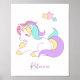 Œuvre d'art murale nominative, Affiche de licorne pour enfants, image personnalisée de l'enfant.