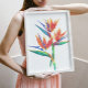 Poster De Dessin D'Oiseau Tropical Du Paradis. Arbre fleurs colorées Bird Of Paradise aux couleurs orange rouge vert et bleu. Art de Inanna Serene Smith.