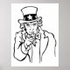 Dessin simple en noir et blanc de l'oncle Sam faisant sa célèbre pose de doigt pointant WE WANT YOU. Customisez facilement et ajoutez votre propre slogan. Illustration disponible sur divers cadeaux et produits.