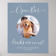 Open Bar ! Calligraphie simple mais élégante, ce panneau de bar mariage dispose d'Open bar dans la calligraphie élégante, et les boissons sont sur nous. Customisez ce panneau de mariage élégant avec votre photo d'animal de compagnie préférée, photo de chien, photo de fiançailles ou photo de couple, noms et date! DROIT D'AUTEUR © 2020 Judy Burrows, Black Dog Art - Tous droits réservés. Open Bar Personnalisé Dusty Blue Poster Mariage de chien animal de compagnie