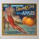 Poster ou imprimer avec des caisses de fruits vintages étiquette pour la plongée fille California Pommes.