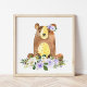 Poster Ours, Animaux de la forêt, Boho, Fleurs violettes