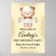 Mignonne affiche d'anniversaire d'ours en peluche, changez le texte à tout ce que vous voulez lorsque vous commandez. Ce panneau se convertira facilement aux tailles 20 x 30 ou 24 x 36 pouces