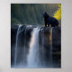 Le design est celui d'un ours noir assis au sommet d'une cascade.