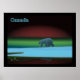 Un ours polaire arpente la glace pendant la longue nuit polaire; les aurores boréales en rouge et vert au loin. Le texte "Canada" en bleu et blanc brillant apparaît également.