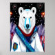 Poster Ours polaire en uniforme et feu d'artifice | Art A