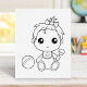 Jolie petite fille en bande dessinée habillée d'un combinaison avec un bib décoré d'une petite étoile. La boule de jouets se repose sur le côté. Fabriqué pour une coloration facile.