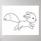 Petit renard mignon avec de grandes oreilles et une queue boisée est en pleine inclinaison. Fabriqué pour une coloration facile.