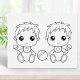 Joli dessin animé garçons en combinaison avec des bibs étoilées assorties tenant des petits hochets. Le ballon de jouets se repose entre eux. Fabriqué pour une coloration facile.