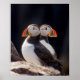 Paire de macareux qui regardent dans des directions opposées sur des rochers aux îles Farne, Northumberland.