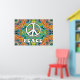 Symbole de paix et le mot "paix" contre un motif arrière - plan coloré.