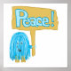 Cette mignonne petite personne de paix turquoise tient un signe qui dit PAIX en lettres bleues. La petite créature mignonne veut que vous aidiez à répandre le mot pour la paix sur la terre.