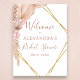 Pampas Grass et feuilles de palmier Boho Floral Eucalyptus Bohème Cadre aquarelle Enterrement de Vie de Jeune Fille Printemps ou Été Mariage Panneau de Bienvenue - avec une forme géométrique de faux feuille d'or comprend une typographie de script élégante et belle avec des fleurs botaniques modernes pour la célébration spéciale du jour du Mariage.