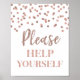 Pancarte servez-vous pour baby shower, enterrement de vie de jeune fille, fête d'anniversaire ou mariage avec un motif confetti rose gold.