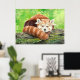 Aquarelle d'un panda rouge sur un vieux tronc d'arbre.