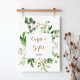 Cette pancarte élégante de cartes et cadeaux de verdure d'eucalyptus est parfaite pour un mariage tropical ou une fête de mariage. Le design présente de belles feuilles vertes d'eucalyptus peintes à la main de manière artistique, disposées en formes géométriques, inspirant la beauté naturelle. Faites de la ligne de texte au bas de la pancarte la vôtre en incluant la date, les noms des mariés ou un court message comme "Merci". Cette pancarte peut compléter un mariage, n'importe quel événement ou fête.