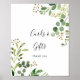 Cette pancarte cadeaux et cartes florales simples d'eucalyptus est parfaite pour un mariage moderne ou une fête de mariage. Le design présente de belles feuilles vertes d'eucalyptus peintes à la main de manière artistique et disposées en formes géométriques, inspirant la beauté naturelle.