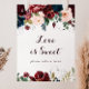 Ce panneau d'amour doux illustré à l'aquarelle en automne est parfait pour un simple mariage ou une douche de mariée. Le design présente des roses et des pivoines artistiquement peintes à l'aquarelle dans des tons de bleu marine, de bordeaux, de rouge et de rose pâle avec des feuilles vertes élégantes, inspirant la beauté automnale idyllique et colorée.