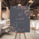 Ce panneau d'amour fleuri sauvage bleu classique est doux est parfait pour un mariage moderne ou une fête prénuptiale. Le design présente des fleurs sauvages jaunes, violettes et blanches avec du feuillage sur un fond aquarelle rose et vert.