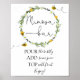 Panneau de bar Mimosa avec une couronne aquarelle de verdure et de fleurs jaunes avec des abeilles bourdonnantes et les mots bar Mimosa dans un script calligraphique amusant.