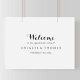 Ce panneau de bienvenue à une fête de fiançailles en calligraphie moderne est parfait pour une célébration de fiançailles simple. Le design simple et élégant présente une typographie de script classique et chic en noir et blanc.