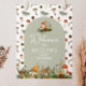 Magnifique panneau de bienvenue sur le thème des champignons avec des fleurs sauvages et des accents de abeilles. Cette affiche imprimable éditable est parfaite pour toute fête d'anniversaire des 1 an sur le thème de la forêt automnale, baby shower, bridal shower ou tout événement.