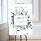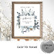 Panneau de bienvenue élégant avec possibilité d'ajouter n'importe quel événement, et bouquet floral exquis encadrant vos informations. 20 x 25 cm est simplement un exemple, vous pouvez choisir parmi des tailles plus grandes et plus petites. Feuillage et fleurs dans des tons de bleu poussiéreux, marine, blanc, gris, sauge et caramel. Votre nom en calligraphie moderne gracieuse. Facile à encadrer ou alternativement coller/agrafer sur du MDF robuste et peu coûteux. Fait partie de notre collection de mariage et d'événements "Rustic Blue Mountains".