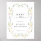 Un Panneau de Bienvenue Bébé en Fleur pour Baby Shower avec un beau cadre floral aquarelle associé à un script et une police classique. Parfait pour une Baby Shower de printemps ou d'été.