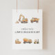 Accueillez vos invités avec un panneau de bienvenue moderne représentant des camions de construction aquarelle et une typographie noire simple. Une façon élégante de définir le ton pour la fête de votre petit constructeur.