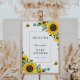 Accueillez vos invités à votre baby shower avec ce magnifique poster, doté d'un cadre doré entouré de feuilles d'eucalyptus, de fleurs de soleil et d'abeilles. Ajoutez le nom de l'invité d'honneur, la date de la fête et le texte de bienvenue personnalisé à l'aide des champs fournis.