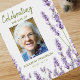 Panneau de bienvenue pour funérailles avec des fleurs de lavande violettes, une photo de votre proche, leur nom et dates.