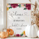 Panneau de bienvenue pour une douche de mariée automnale bordeaux floral. Décoration de douche de mariée pour tomber amoureux.