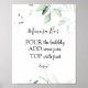 Panneau de bar Mimosa avec une illustration de verdure charmante et les mots bar Mimosa dans un script de calligraphie amusant. Ou modifiez le titre pour dire Bar Momosa pour une Baby Shower.