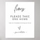 Notre panneau de signalisation d'événement de cadeaux de fête est parfait pour être encadré et affiché sur une table lors de votre mariage ou de votre fête, permettant à vos invités de savoir qu'ils peuvent emporter un cadeau en partant. Cet article fait partie de notre suite d'invitations de mariage Gwen G400, veuillez visiter notre magasin pour voir la collection d'articles coordonnés.