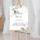 Ce panneau de calligraphie eucalyptus doré à la mémoire de est parfait pour un mariage rustique ou une douche de mariée. Ce design artistique présente un feuillage doré et vert aquarelle dessiné à la main, inspirant la beauté naturelle.