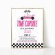 Ceci est un panneau de capsule temporelle pour fête d'anniversaire de voiture de course rose !