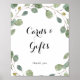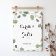 Ce panneau de cartes de calligraphie et de cadeaux de feuillage de verdure est parfait pour un mariage rustique ou une fête de fiançailles. Le design présente des branches et des feuilles de eucalyptus vert botanique dessinées à la main.